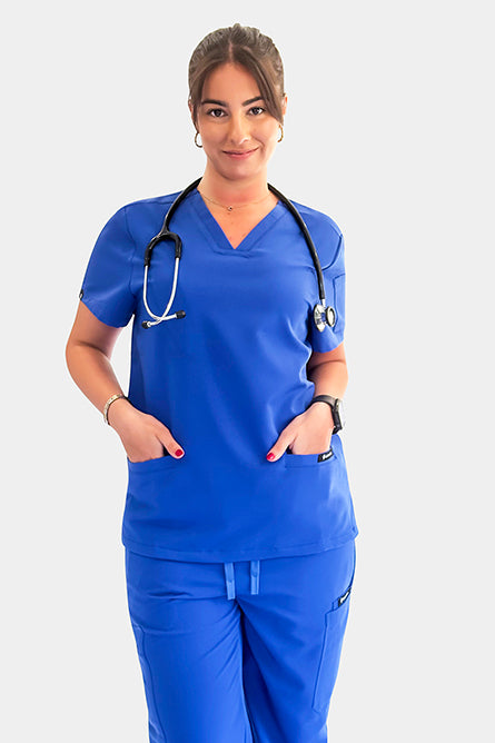 Our signature performance blend is engineered for long shifts and demanding days. We combine 72% Polyester, 21% Rayon, and 7% Spandex to create scrubs that are durable yet incredibly soft.